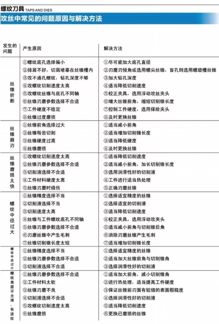 攻絲中常見的問(wèn)題原因與解決方法